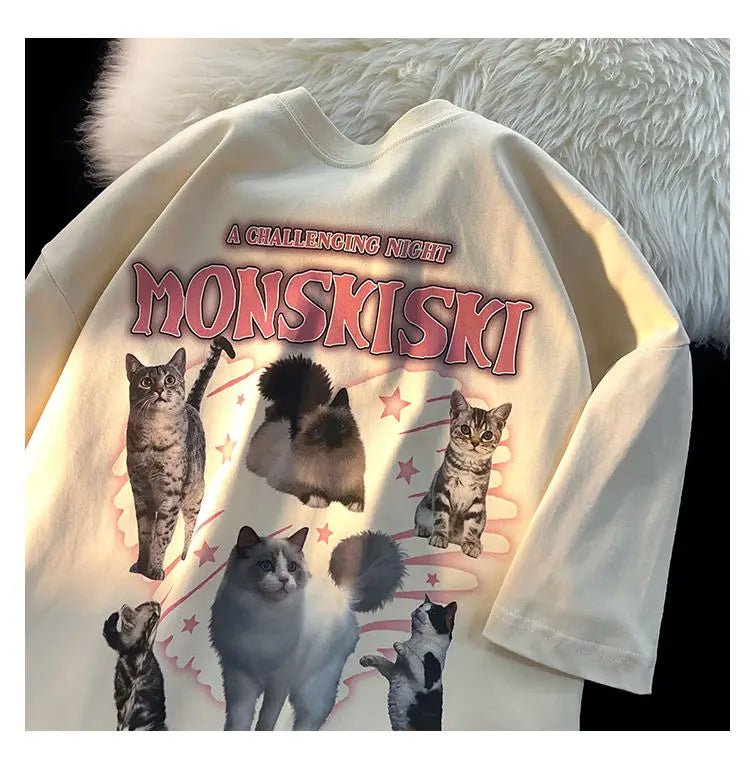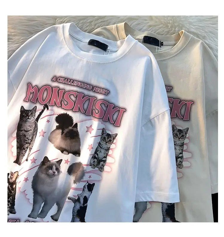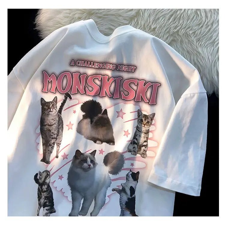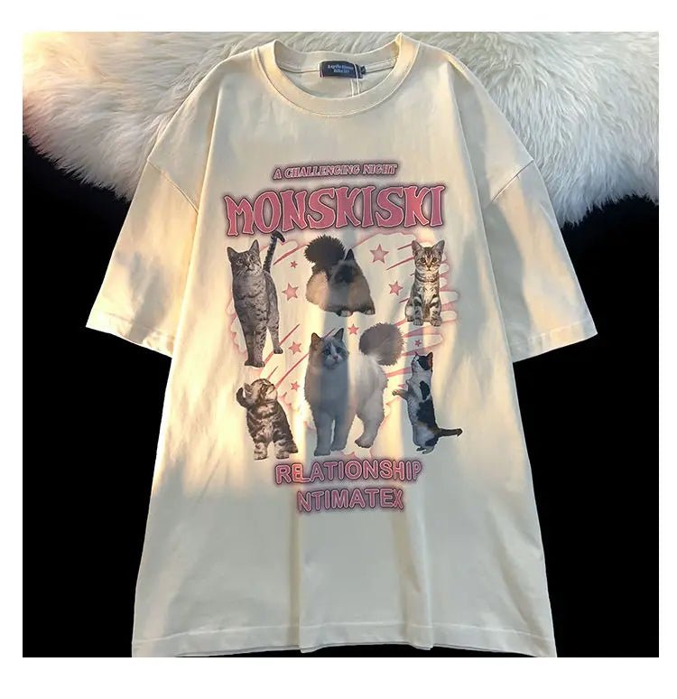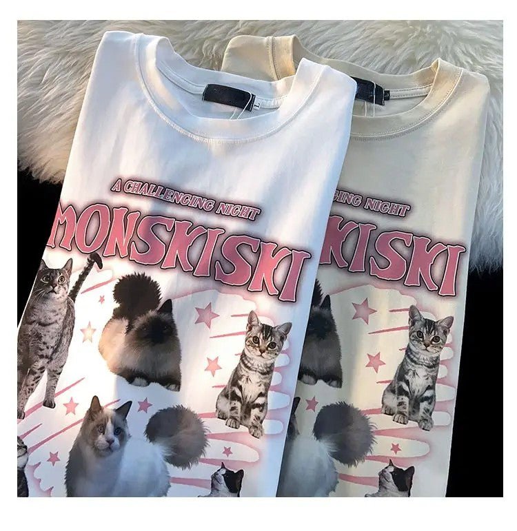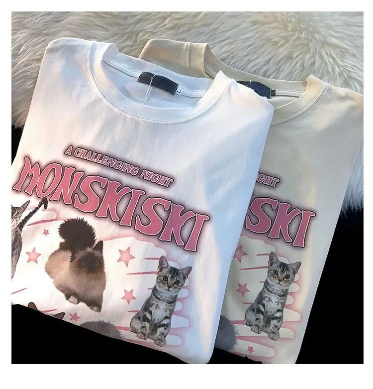 This mix of cotton and polyester t-shirt, available in white and apricot, is a heartwarming addition to any cat mom's wardrobe!