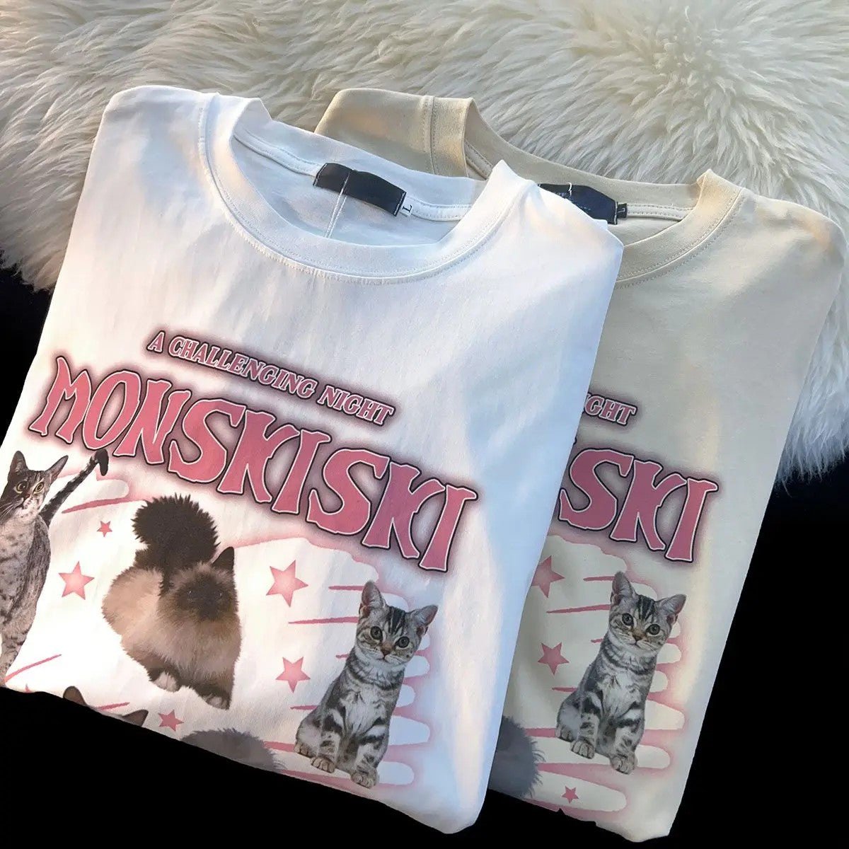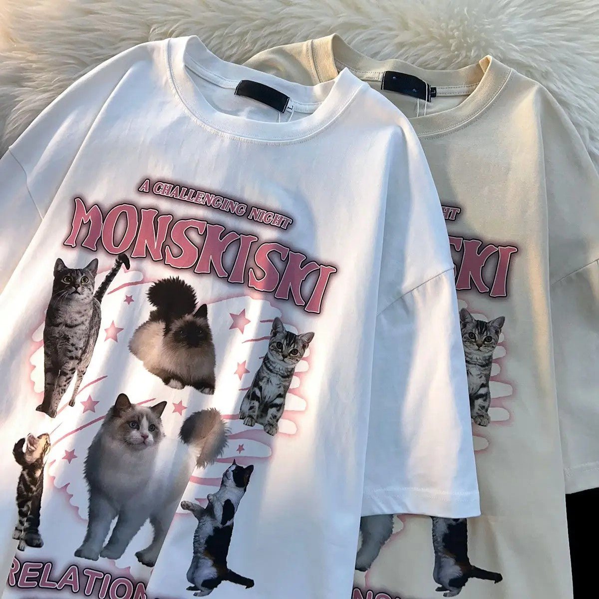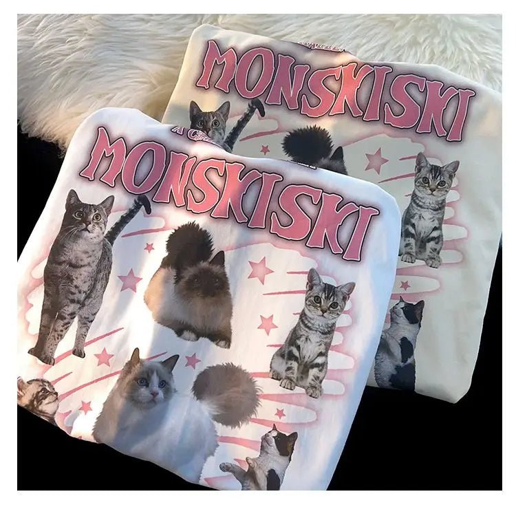 This mix of cotton and polyester t-shirt, available in white and apricot, is a heartwarming addition to any cat mom's wardrobe!