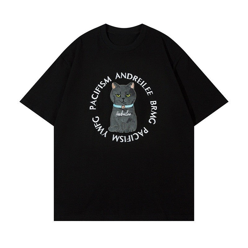 Be a trend-setter with "A Peace of Cat" Embroidery Streetwear mens cat shirt!