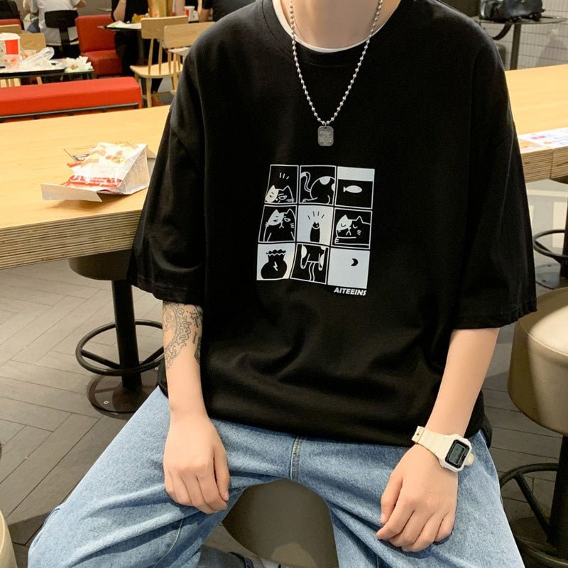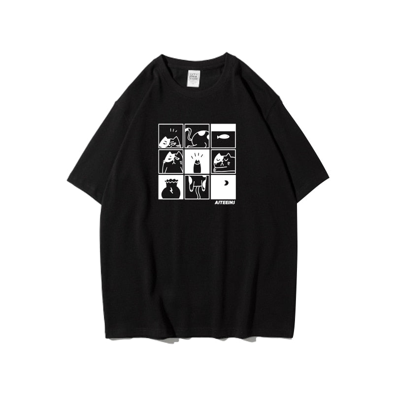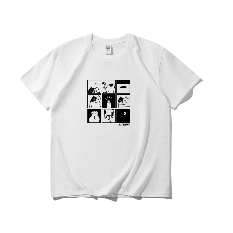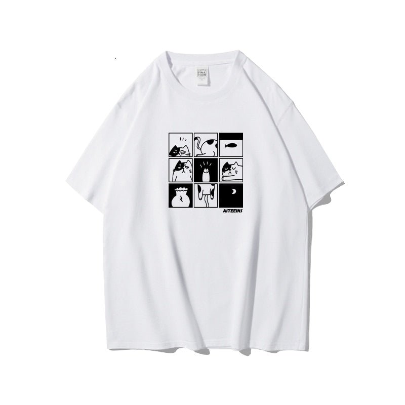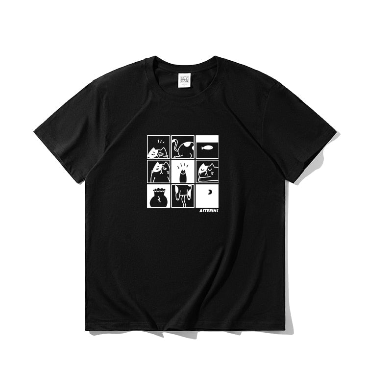 The sleek black and white color palette will surely make the hilarious graphics pop, turning heads and igniting laughter wherever you go! An ideal choice for those laid-back, casual days when you want to inject some fun into your outfit. With this shirt, you can flaunt your love for cats and memes while still keeping it stylish.