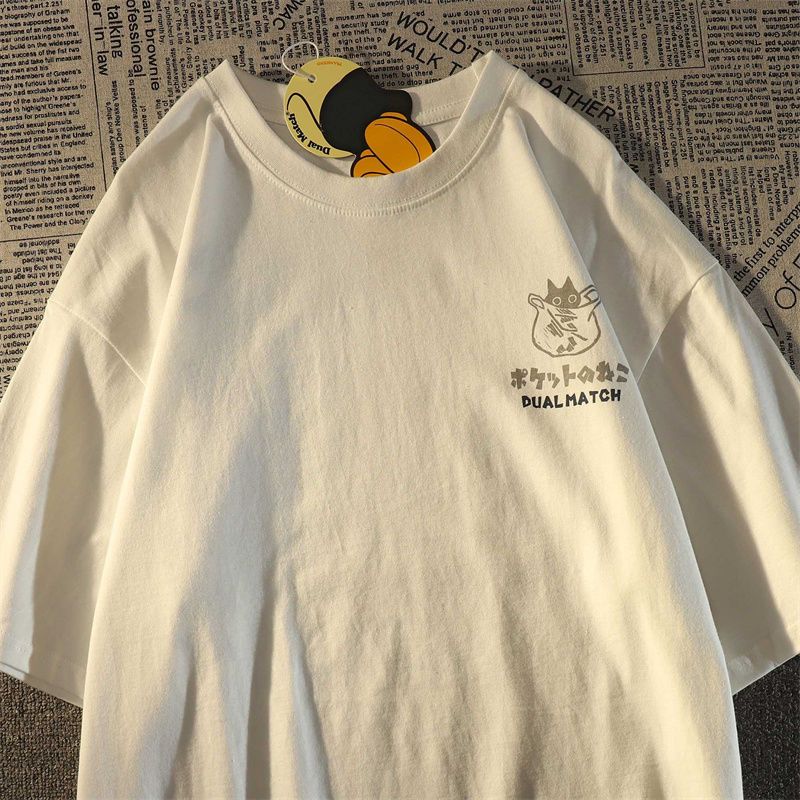 In line with its Harajuku inspiration, the t-shirt adopts a bold oversized silhouette for that distinctive swag appeal. Available in versatile gray and white colors, this t-shirt flaunts its main design on the back, with a subtle cat print adorning the front.