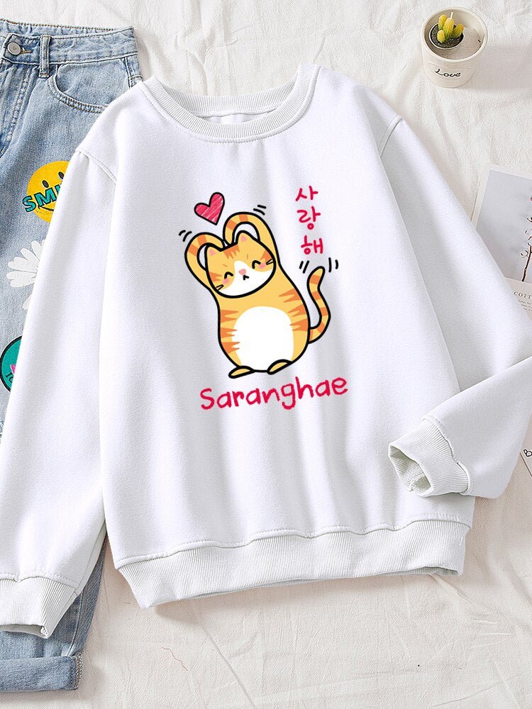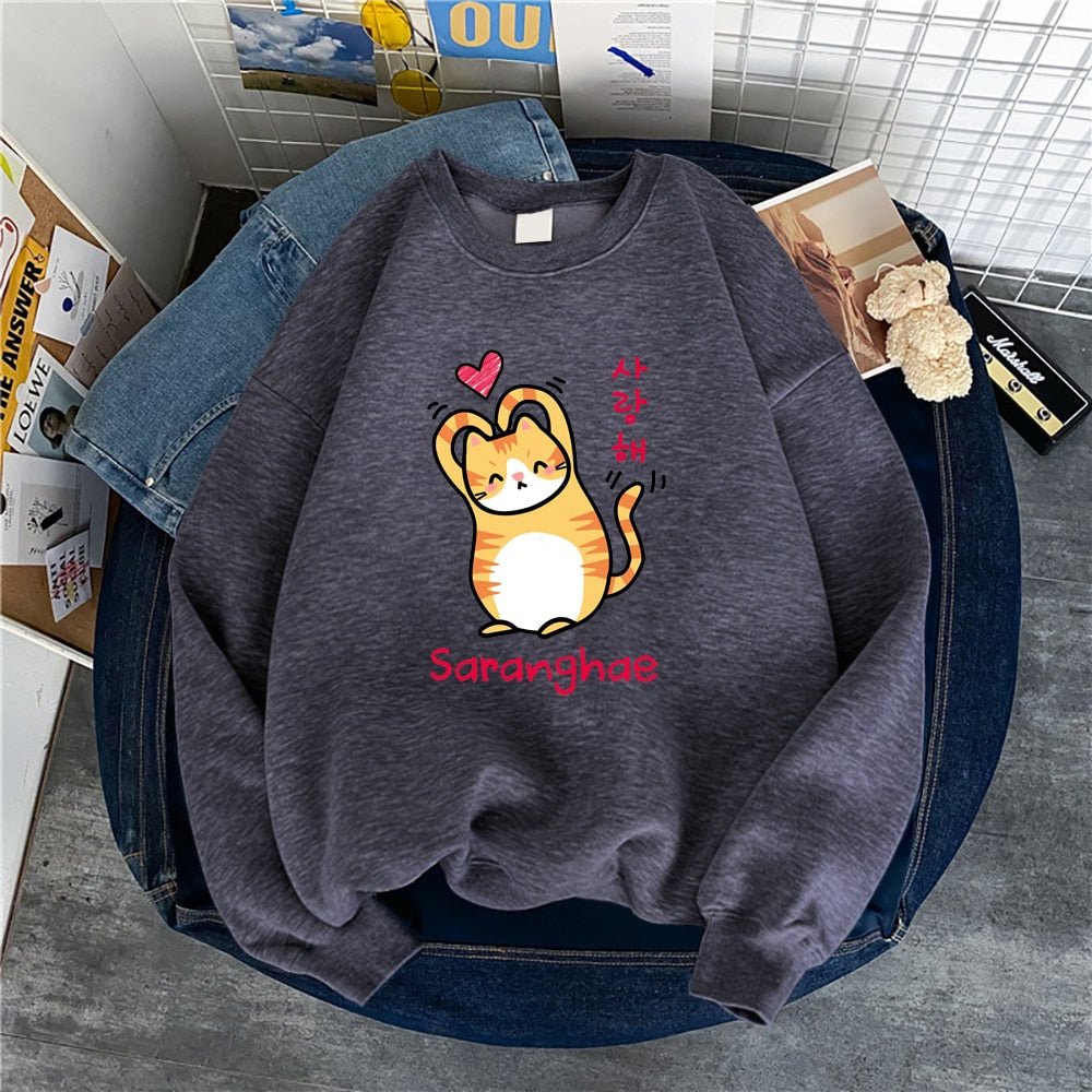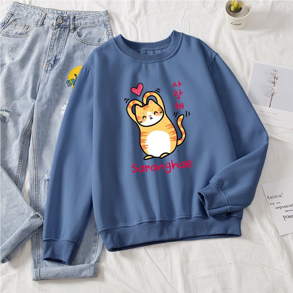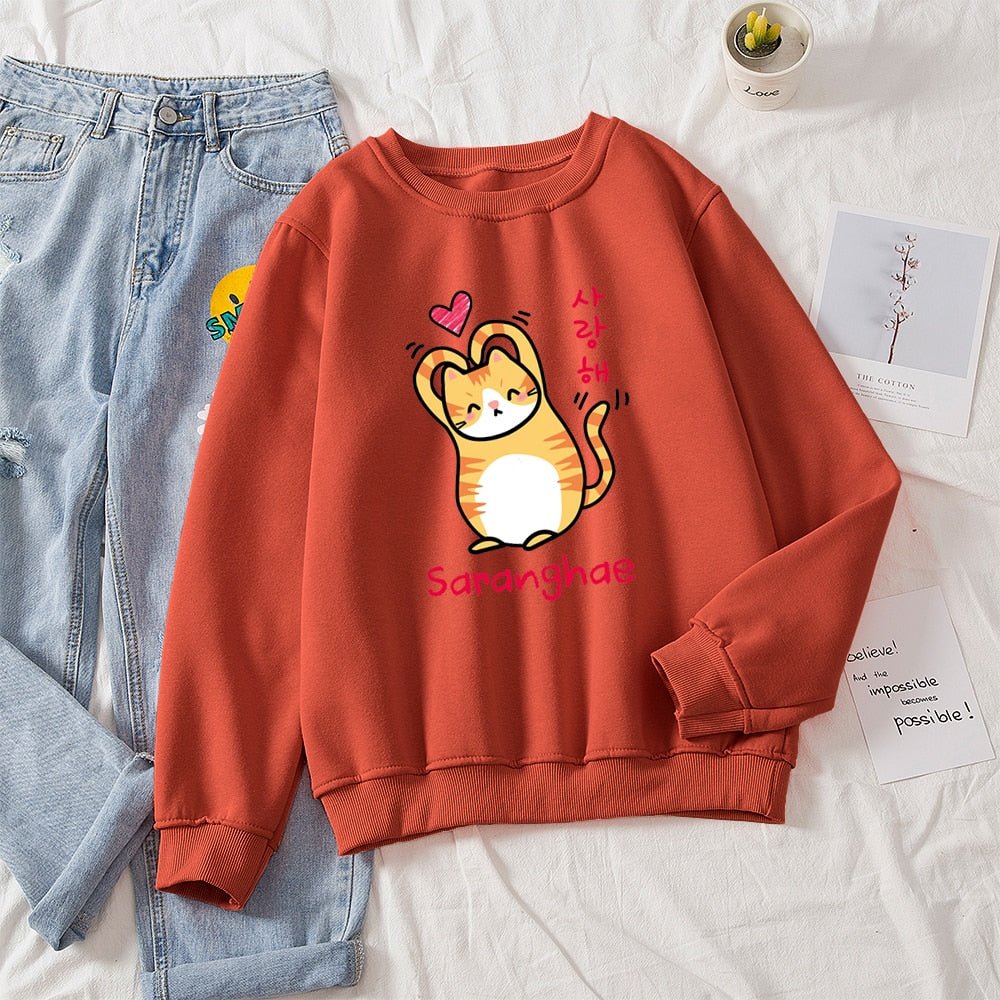 Show the world you love them! Cuter than your average cat, these cute cat sweaters feature a snuggly kitty making a heart with its arms (barely). With bold Korean lettering and a variety of colors to choose from, you'll be sure to find the purrfect style for you! Saranghae!