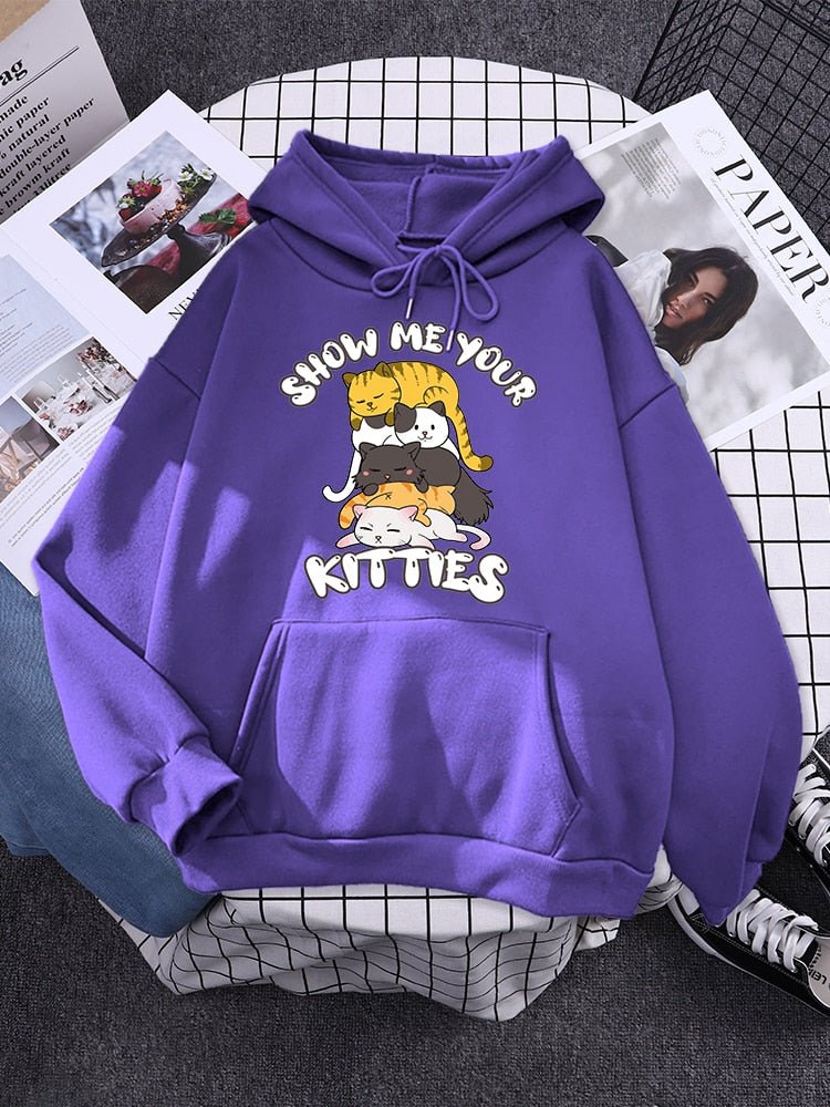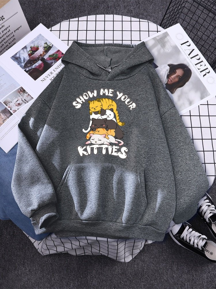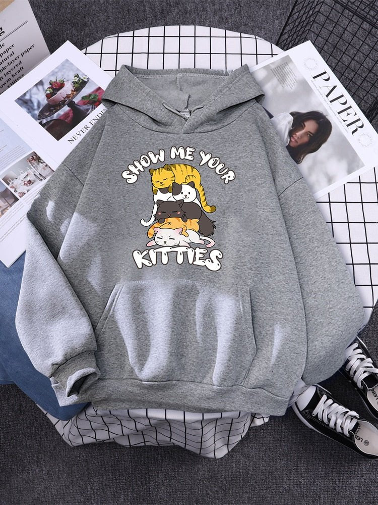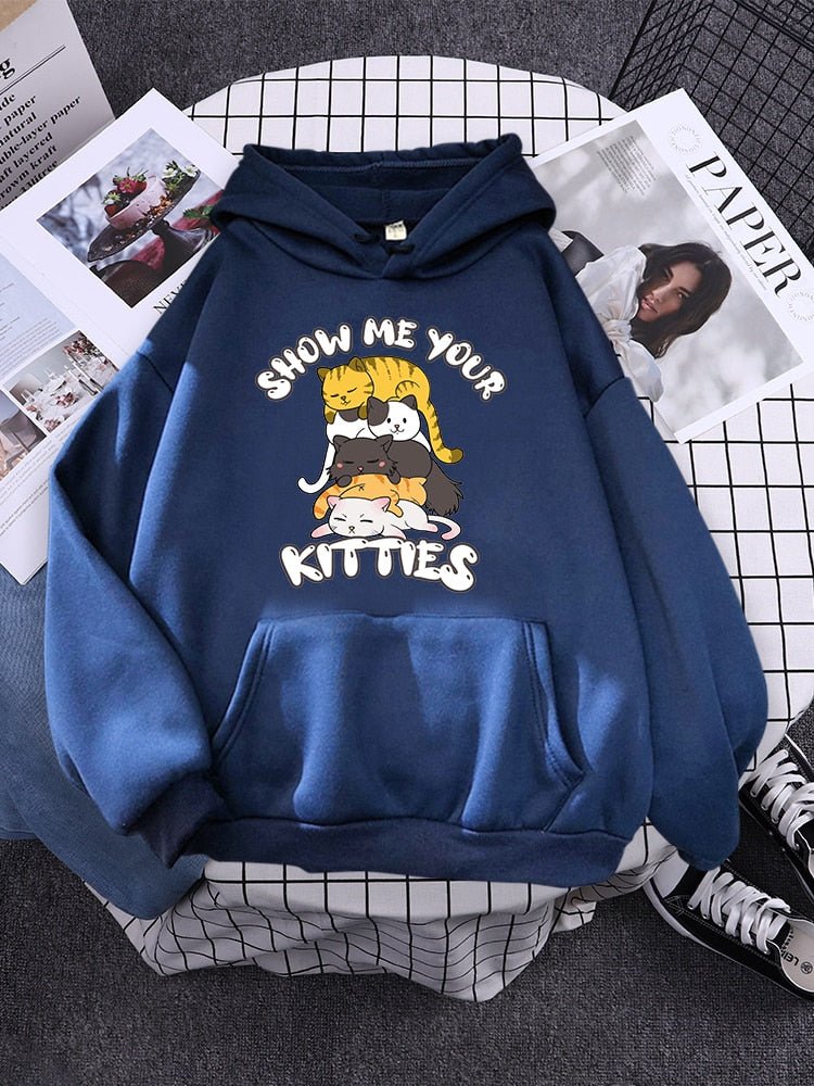 Wear this adorable "Show Me Your Kitties" Cute Cat Hoodie and start telling people that you own many of them!